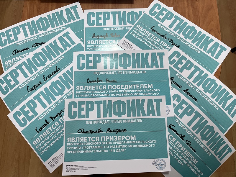 В ходе мероприятия состоялось награждение призеров внутривузовского этапа предпринимательского турнира программы по развитию молодежного предпринимательства «Я в деле», вручены именные Сертификаты.